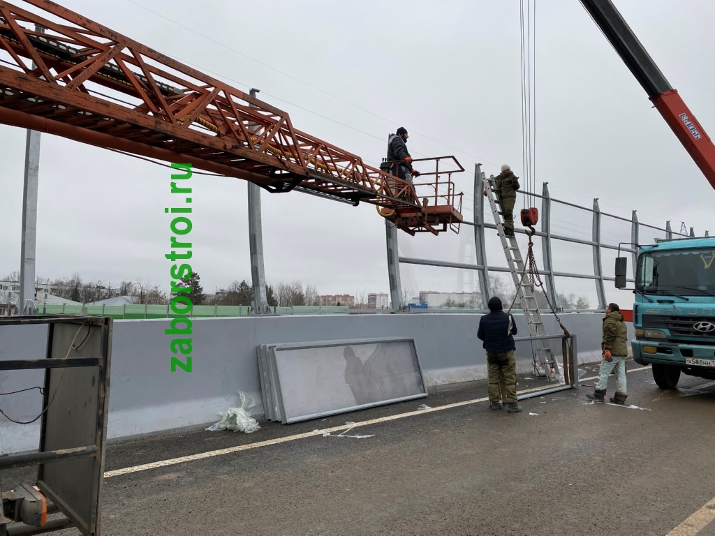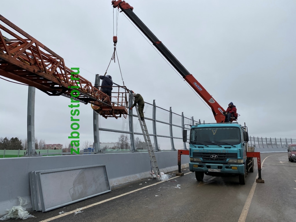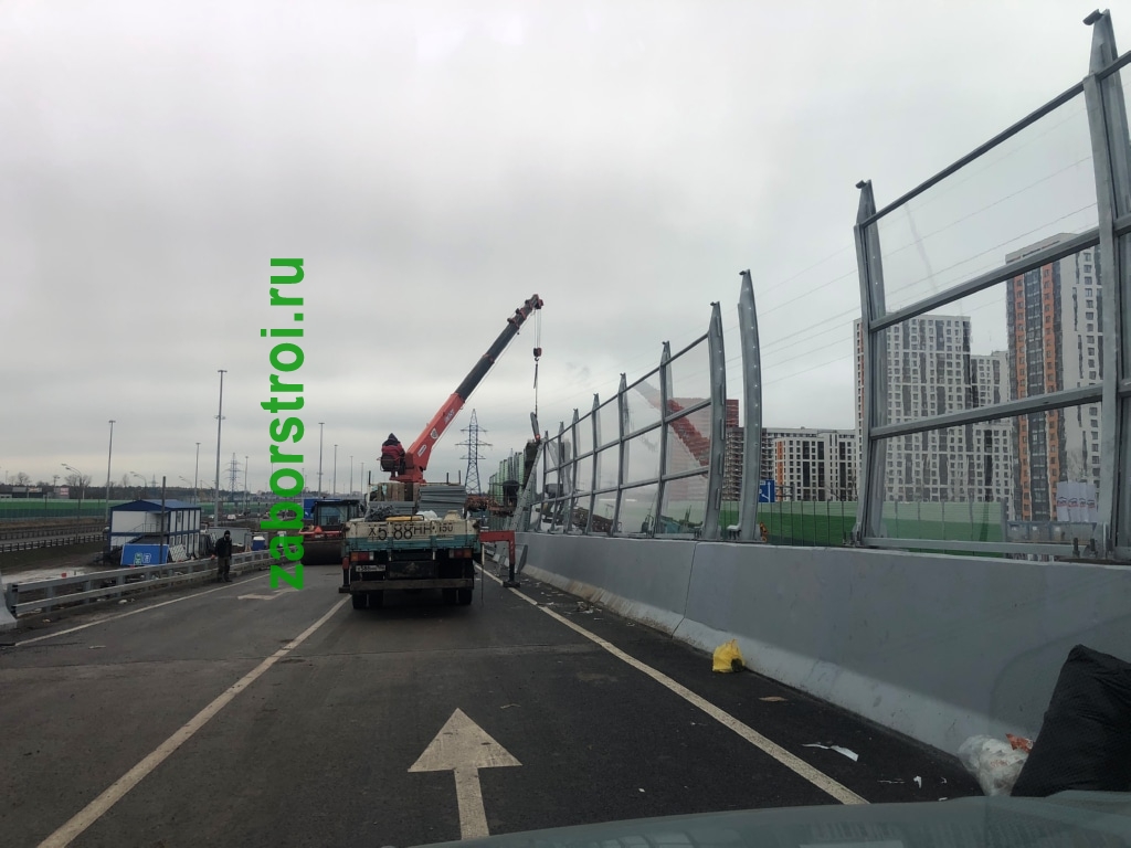 Прозрачный шумозащитный забор Развязка М1 27км
